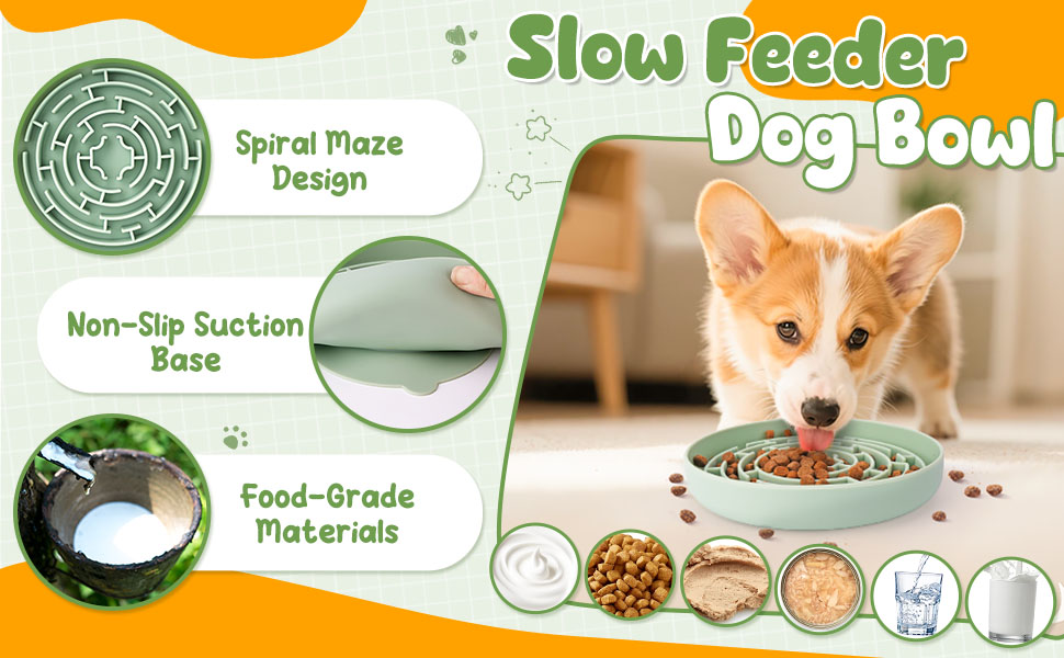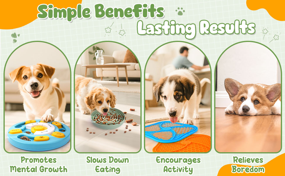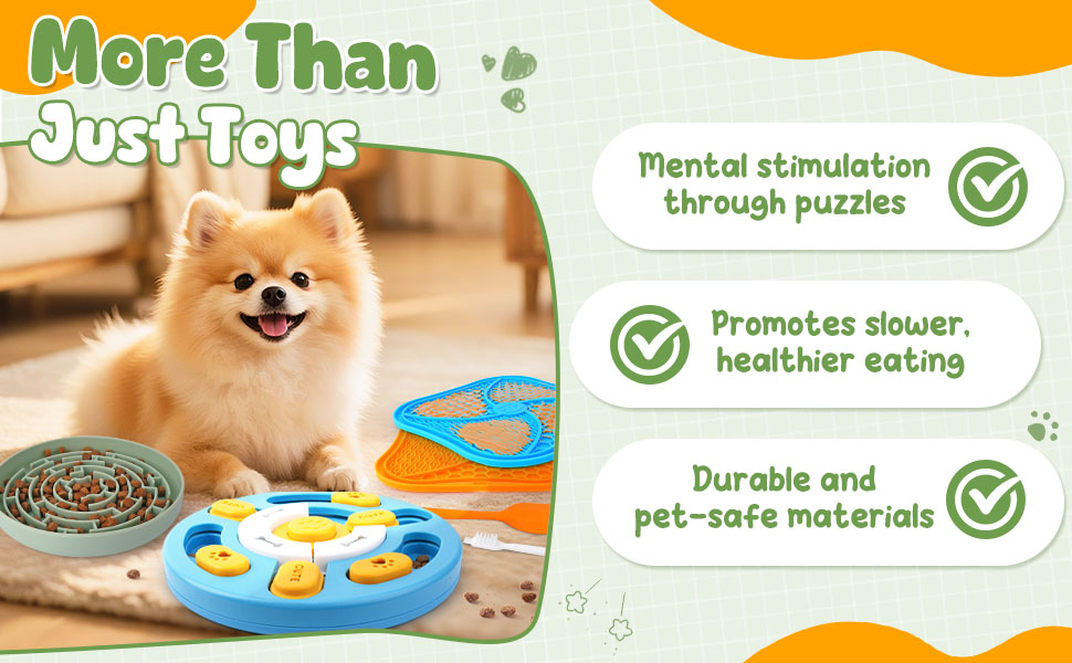 - All-in-One Fun & Feeding: Includes 1 dog puzzle toy with squeak, 1 slow feeder bowl, 2 dog lick mats, and 3 feeding accessories. This value-packed set keeps your dog mentally stimulated while encouraging slower, healthier eating