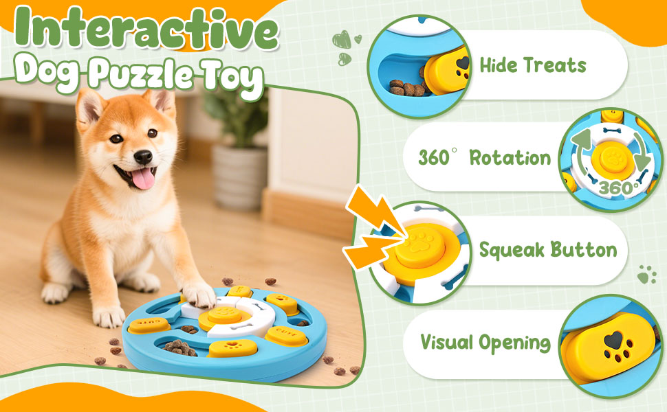 - Challenges Brainy Puzzles:The included dog puzzle toy combines treat-seeking fun with a built-in squeaker to add excitement. Its interactive design promotes focus, problem-solving, and mental stimulation, turning mealtime into a rewarding mental workout