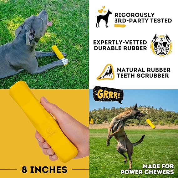 Indestructible Stick Dog Toy - Lifetime Replacement - Durable Chew Toy for Aggressive Chewers - Safe Non-Toxic Natural Rubber - Chew Tug & Fetch - Tough, Heavy Duty - Med/Large Breed, 8”x2”