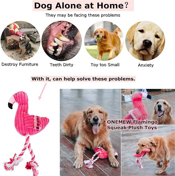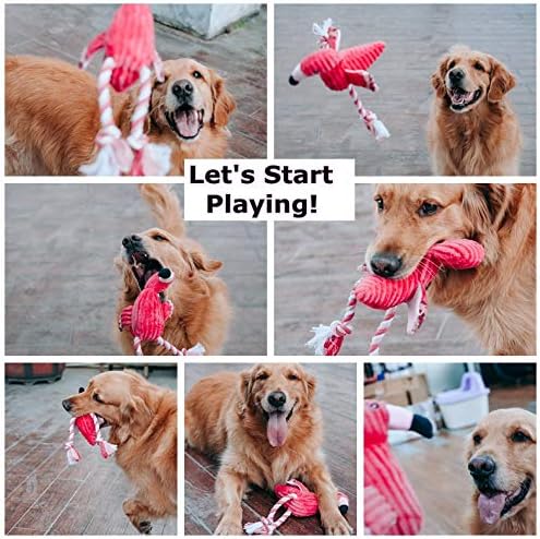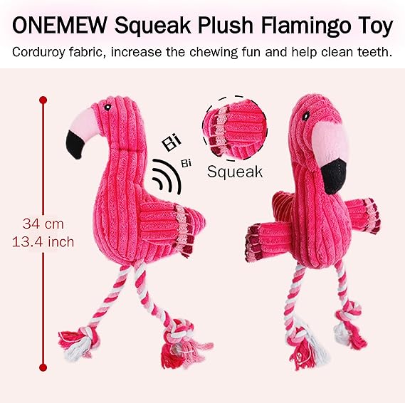 Dog Plush Toys,Cute Flamingo Durable Squeaky Teething Toys for Puppy, Interactive Stuffed Dog Chew Toys for Small-Large Dogs