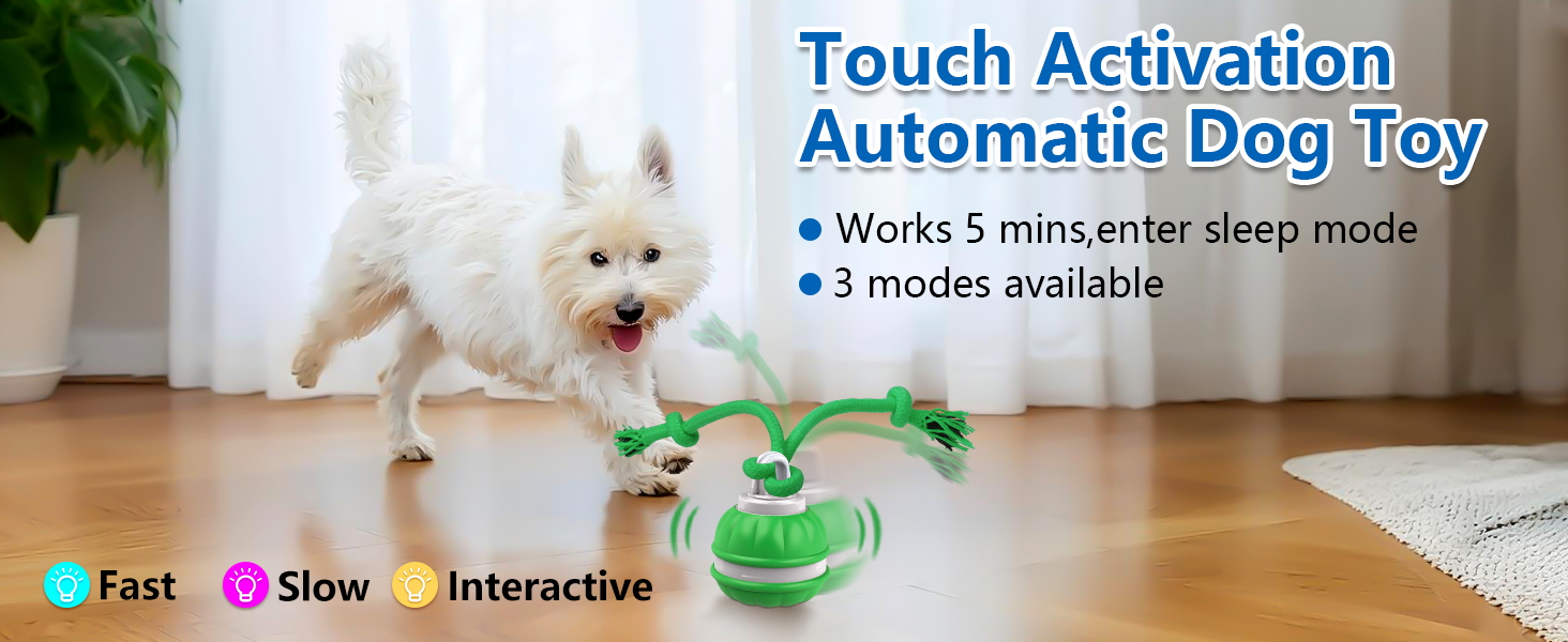 - Motion dog toy: Interactive dog ball working 5 mins, then enters standby mode, and awake 1 min every 1 hour automatically, or touched by pets to re-start the toy