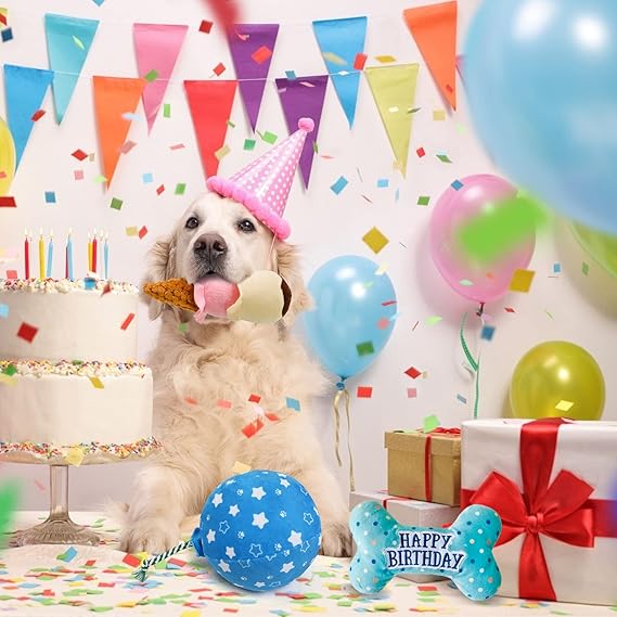 Prime Pets Plush Dog Toys Set, 3 Pack, Crinkle Squeaky Dog Toys, Food Shaped Pet Toy for Small Medium Large Dogs, Stuffed Puppy Chew Toy