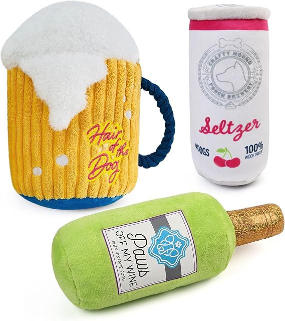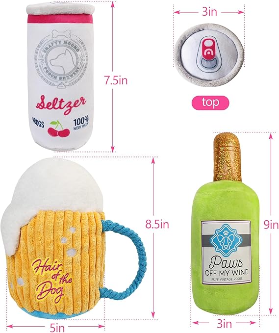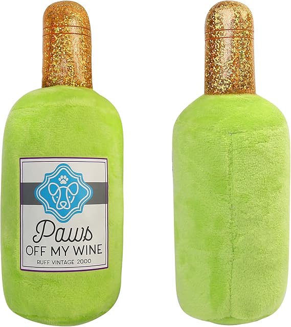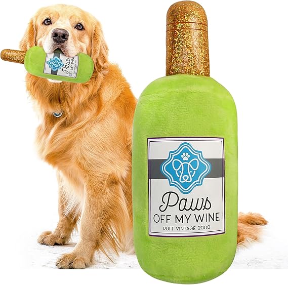 - Playful Design: This plush dog toy is shaped like a wine bottle, adding a fun and whimsical touch to playtime. Perfect size for dogs of all breeds to carry around and enjoy; Note: Not suitable for aggressive chewers and are not indestructible