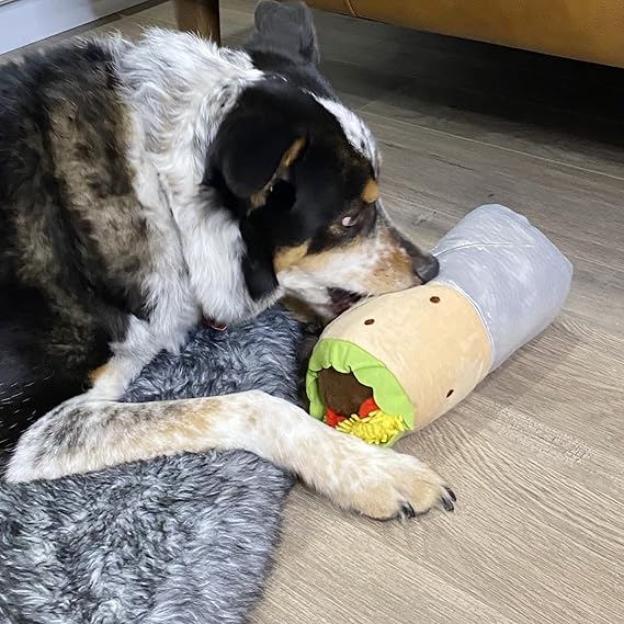 - Crinkle Dog Toy: The stuffed dog toy features a crinkle paper that creates an enticing, crinkly sound to attract your pup's attention
