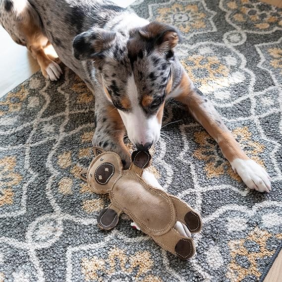 SPOT Dura-Fused Leather Barnyard Animals - Stuffed Dog Toy with Squeaker, Real Leather & Jute Fabric, for Light to Moderate Chewers, Great for Adult Dogs and Puppies - 11in, Assorted Styles, 1 Piece