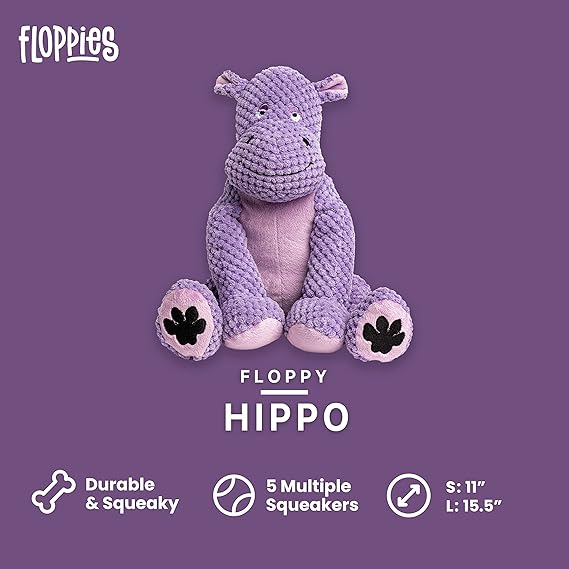 fabdog Floppies Plush Dog Toy - Cute & Durable Squeaky Dog Toys - Best Squeak Toy for Puppies and All Breeds | Ideal Pet Gift| Large Hippo