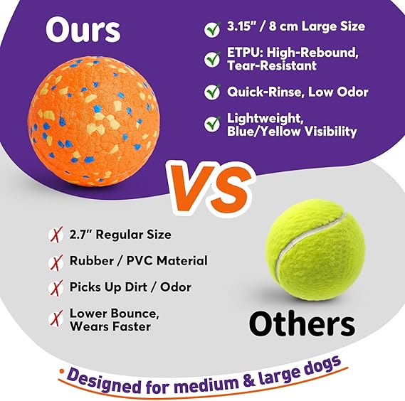 - ETPU Performance & Size: High rebound ETPU with lightweight strength for aggressive chewers, gentle on teeth and gums, large 3.15 in / 8 cm for medium and large dogs, ideal for fetch and training, not indestructible use with supervision
