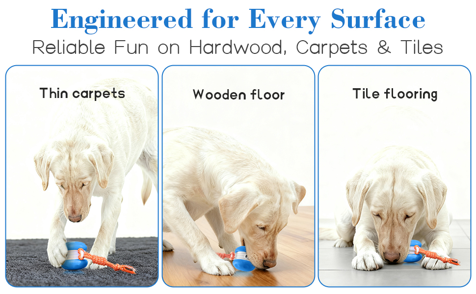 - 【Unpredictable Movement & Rope Design】Designed with irregular rolling patterns and a durable rope attachment, this interactive dog ball stimulates your dog's curiosity and encourages active play, keeping them entertained and mentally engaged for hours.