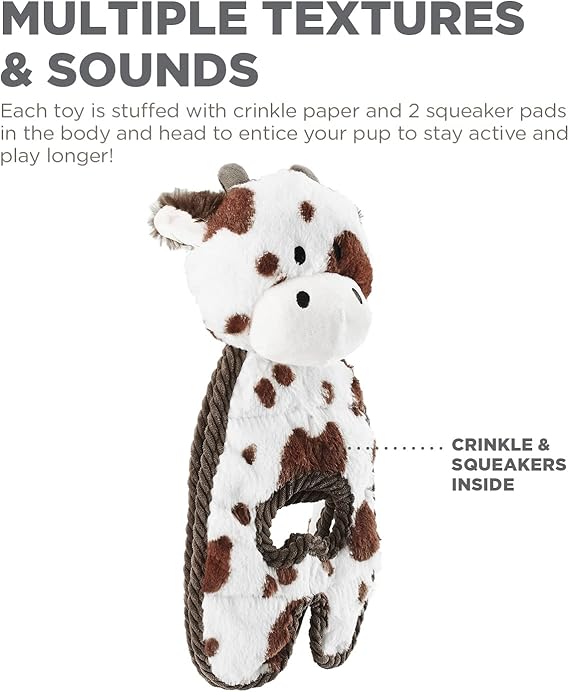 Outward Hound by Charming Pet Cuddle Tugs Cow Plush Squeaky Dog Toy