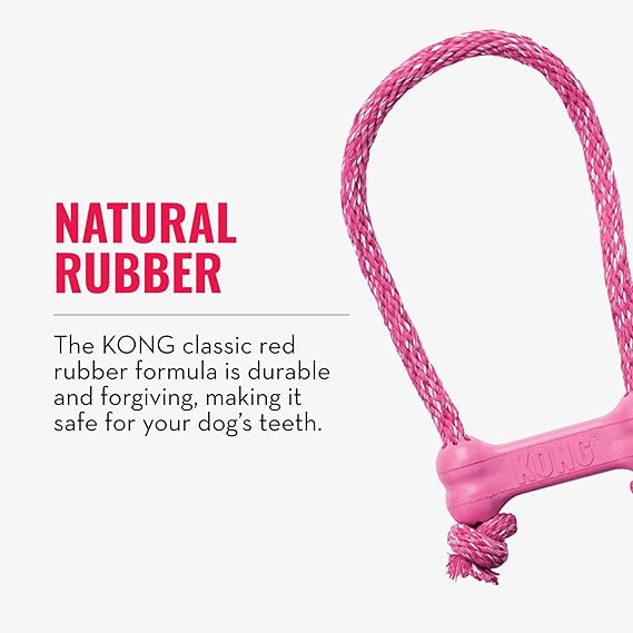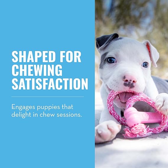 KONG Puppy Goodie Bone with Rope - Natural Rubber Bone with Cotton Rope - Teeth Cleaning Chew Toy for Growing Puppies - for XS Puppies - Pink