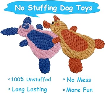 --These Comtim no stuffing dog toys will provide hours of fun without the unnecessary need of cleaning up fuzzy stuffing mess.