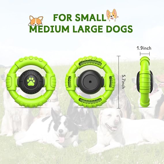 - Unique design: The creative shape looks cool, it is like your dog is honking the horn of the car while driving. The exterior is molded with ridges and bumps, which allow your dog to get a nice grip on the dog toy. Beef sauce or snacks can be added to the grooves on the back of the toy to increase fun and attraction.