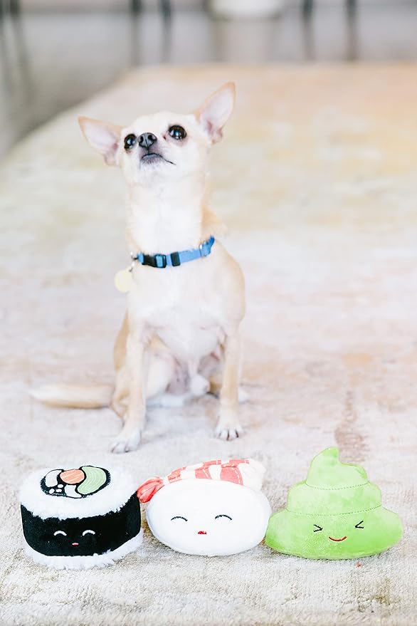 Pearhead Sushi Plush Toys, Durable Squeaky Dog Toy Set, Soft Chew Toys, Pet Owner Must Have Dog Accessory, Set of 3