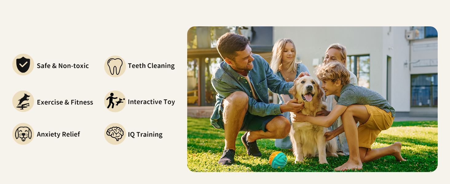 - Dog Chew Toy for Aggressive Chewers - This is a Long-lasting dog rubber toy that dog owners are looking for! It features a double-layer structure with an elastic rubber shell and a hard ABS plastic inner part. With double protection, it can withstand the strong bite of heavy chewers and satisfy your dog's chewing instincts. Some feedbacks said 'Almost no bite marks or cracks after months of use'.