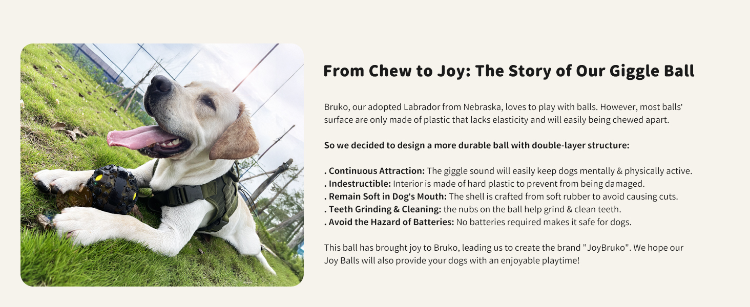 - Teeth Cleaning for Large Dogs - The outer rubber surface is durable yet remains soft and gentle on dogs' teeth and comfortable for chewing. By comparison, some popular squeaky balls use hard plastic surfaces, which may break dogs' teeth or cut their mouths. Our squeaky ball features meteorite-shaped nubs on its rubber surface, designed to help clean teeth and remove food stuck. You can also apply toothpaste on the JoyBruko dog ball to help furries keep dental health!