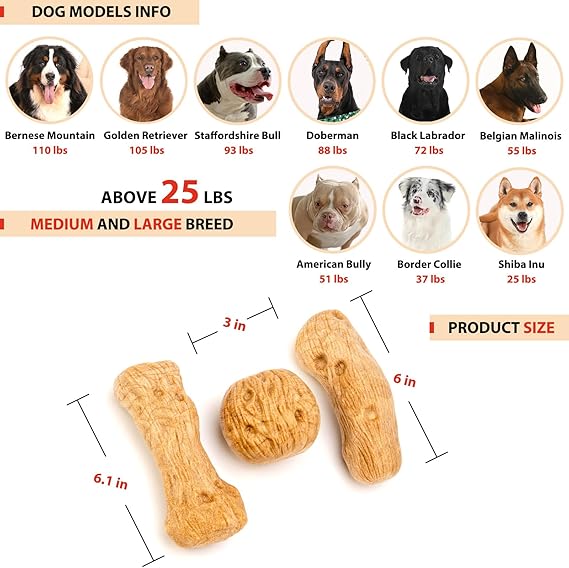 - 3-PACK WOOD-LIKE & LONG LASTING INDESTRUCTIBLE DOG TOY - Got a pooch who loves chewing on outdoor sticks? Our dog toys for aggressive chewers are the perfect solution! Our dog chew toys made from real pine wood and durable nylon, these tough dog toys for aggressive chewers combine natural rustic charm with lasting strength. Built for dogs who love to play hard, this indestructible dog toy provides a safe and satisfying alternative to real sticks. Strong and sturdy design, crafted for heavy-duty chewing. Great for medium to large dogs over 25 lbs.