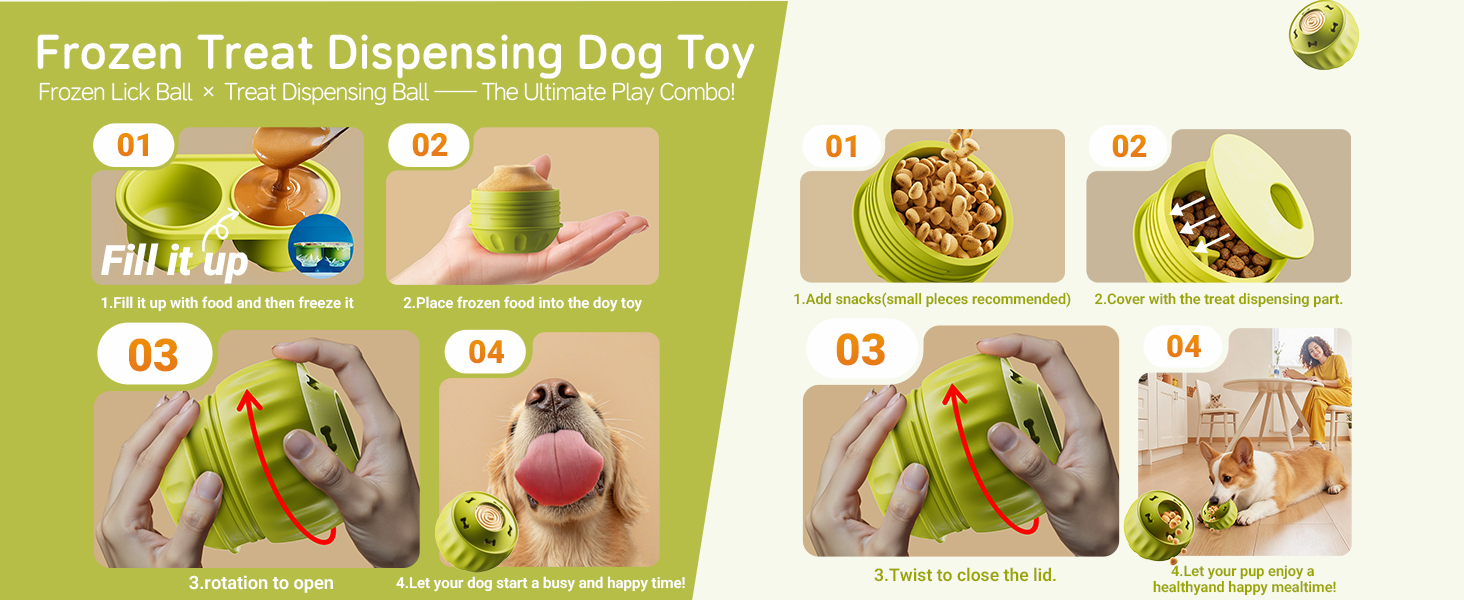 - 【Frozen Treat Dog Toy】 Simply fill the snack mold with your dog's favorite food or treats, put it in the refrigerator to freeze, then place the frozen treat into the toy. It provides a delicious and long-lasting snack to keep your beloved dog occupied. The snack tray can make different combinations of treats to meet various taste needs.
