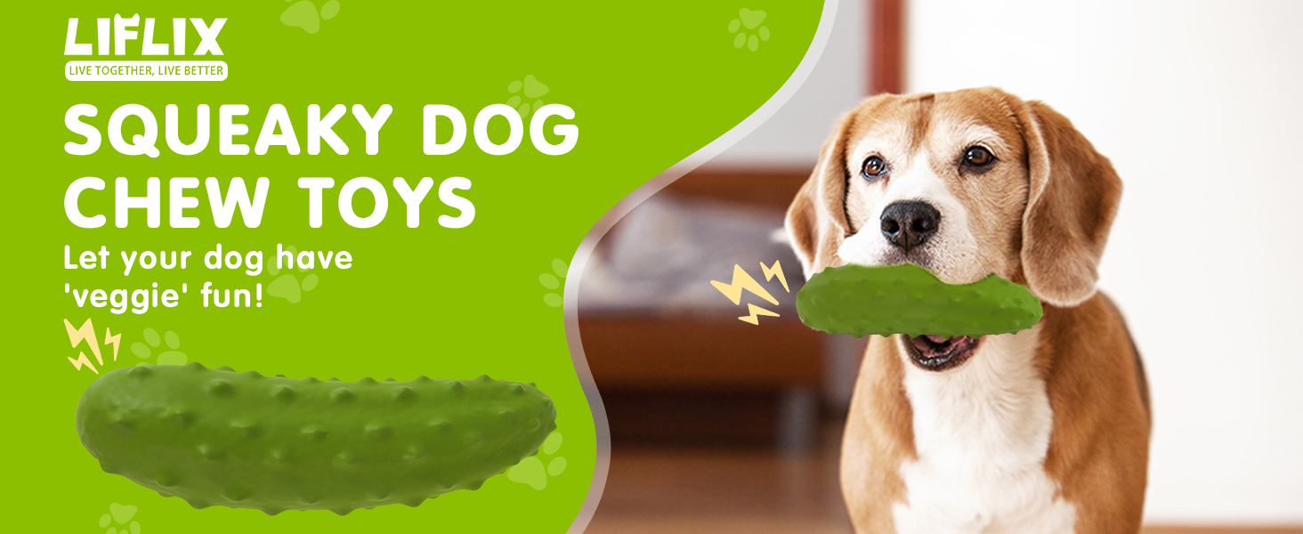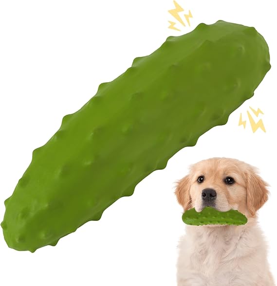 - 【Cute Fruit Modeling】 We turned the cucumber into an exciting squeaky dog chew toy that will add more fun to your best friend's chew toy collection. The unique cucumber shape and fun squeak sound offer a delightful 'veggie' experience for small medium large dogs.