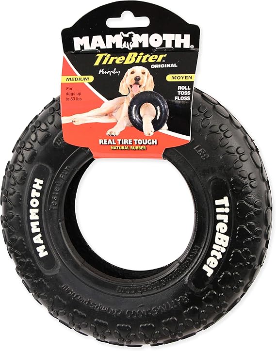 Mammoth TireBiter Originals - Natural Rubber Dog Toys - Dog Toys for Extra Long Interactive Play - Strong Chewer Toys for Dogs - Medium, 8”