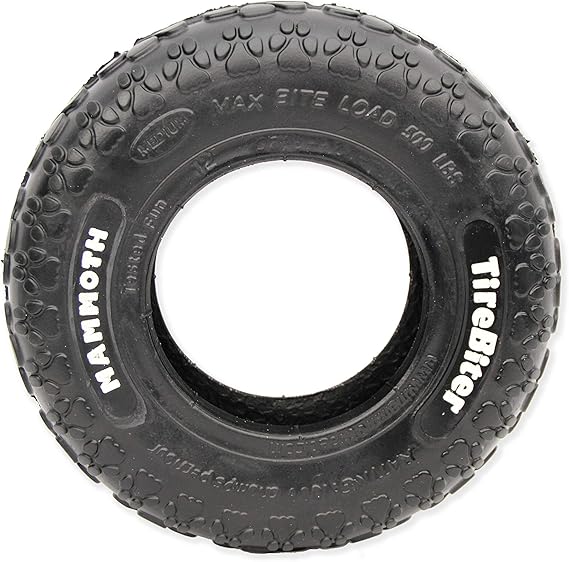 - DURABLE DOG CHEW TOY: This tire shape rubber dog toy has a paw feature surface for better grip.