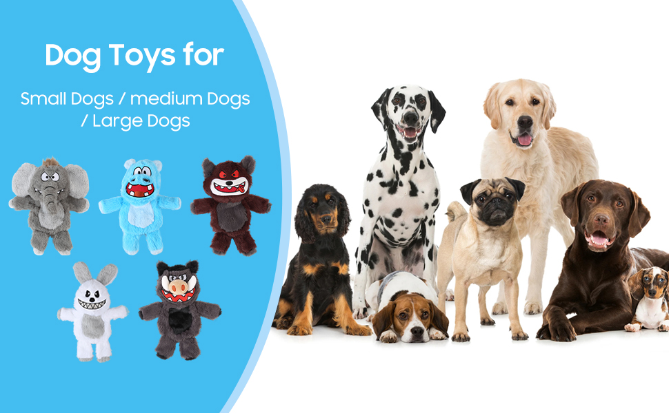 - Value Dog Toys Pack : Our bundle includes five of the most popular Tough dog toys -Wild boar, hippopotamus, wolf, elephant and rabbit - suitable for small medium and large dogs; Get five high-quality dog toys pack