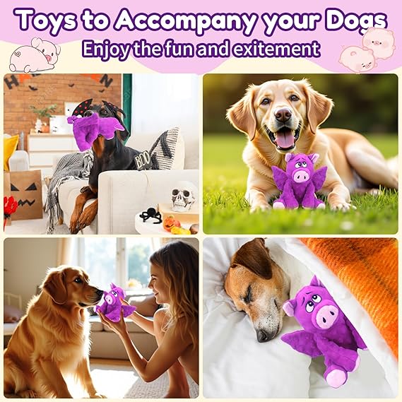 - Squeaky Dog Toys: This plush dog toys comes with a funny squeaker in the pig's body and crinkly crinkle paper in the ears and wings. The squeaky sound offers interactive fun and the rustling sound makes dogs more excited while playing. The squeaky toys stimulate curiosity and engage your dog in playful activities, keeping them entertained and mentally stimulated. It also with avoid destructive chewing and barking. The squeaky noise will pique your dog's interest and attract their attention. Dog squeaky toys also help to relieve stress and anxiety, promote healthier and happier emotions