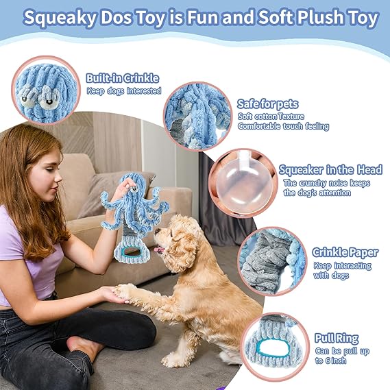 - 【Soft Plush Material】Our octopus dog toy are made of tough plush material and filled with upgraded PP-cotton.They are tooth-friendly. Octopus design that will keep your dog interested and satisfies the dog's natural urge to chew.