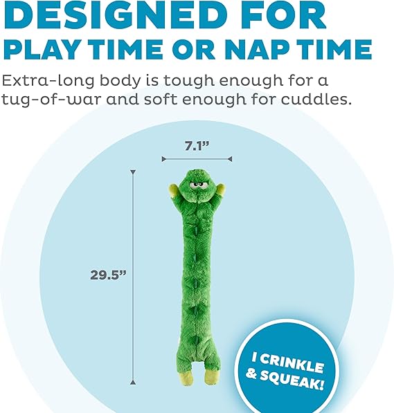 Longidudes from Charming Pet are an ultra-long plush dog tug toy that's as cuddly as it is durable. Soft on the outside for comfortable cuddle sessions but tough on the inside thanks to the unique K9 Tuff Guard technology featuring denier canvas lining, nylon-fused backing, and double stitched seams. Designed to take tug-of-war games to the next level with 3 large squeakers and crinkle material that dogs find irresistible! Great for interactive and solo play, these toys stand up to shaking, dragging, and tugging. Available in multiple adorable plush characters. Note, Longidudes plush dog toys are not meant to be used as chew toys. SAFETY & CARE: When choosing a toy, make sure to choose an appropriate size toy for your dog. No toy is indestructible. ALWAYS supervise your dog when using a toy of any kind. Inspect toys regularly for damage and remove and replace if broken, or if parts become separated, as serious injury may result. Intended for dogs only. Keep out of reach of children.