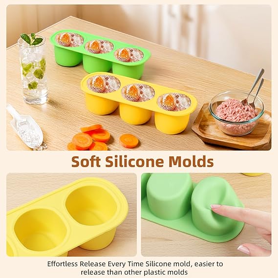 - Double Silicone Molds - Freeze 6 Snacks at Once: Each toy comes with two silicone treat molds (6 cavities in total), allowing you to prepare more frozen snacks at once. Perfect for busy owners who want to extend playtime. This feature makes it both a dog puzzle toy and treat dispensing dog toys, as well as one of the best dog enrichment toys for daily use. Turn it into dog puzzles for smart dogs with frozen treats for added stimulation.