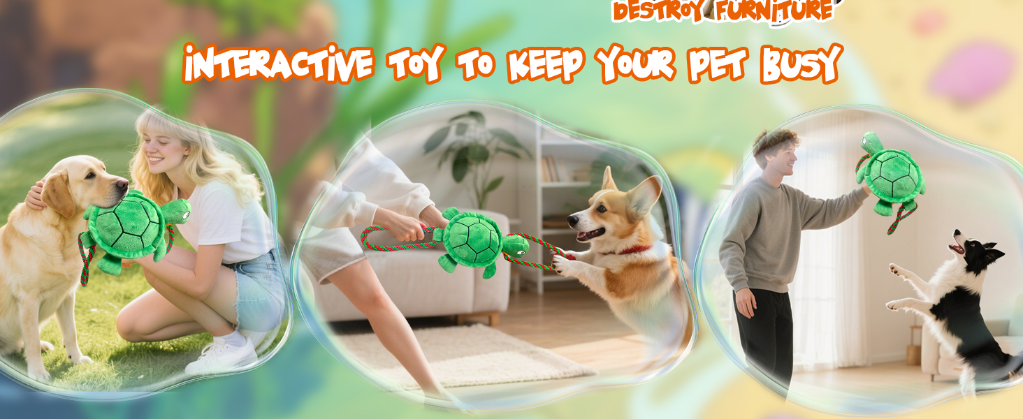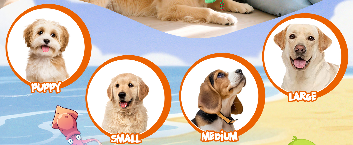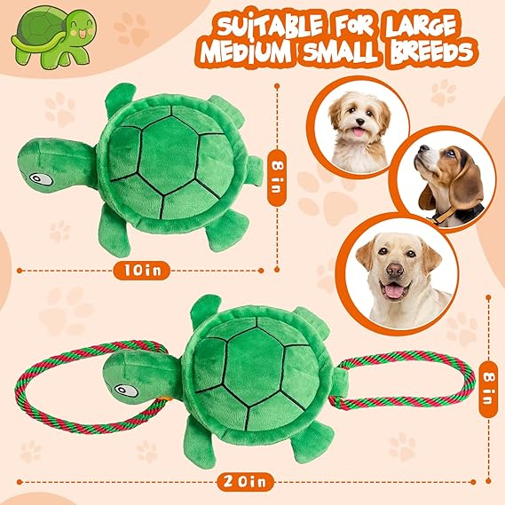 - Dog Toys for Small Medium Large Dogs - The turtle is 7.5 inches long and 8 inches wide, and can be stretched to 20 inches with the drawstring. Whether it is suitable for small, medium or large dogs, it can meet the needs of chewing, pulling and hugging. Dogs of different sizes and growth stages can find the right way to play and enjoy the interactive fun
