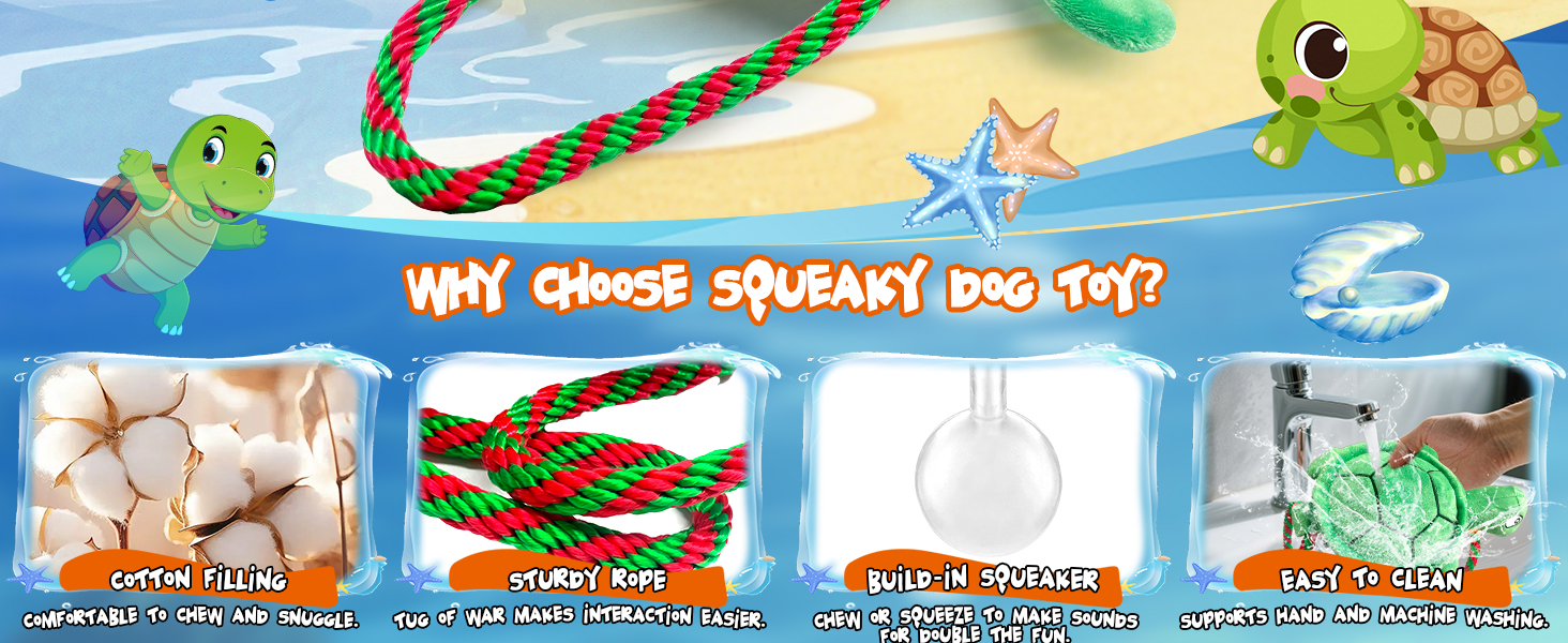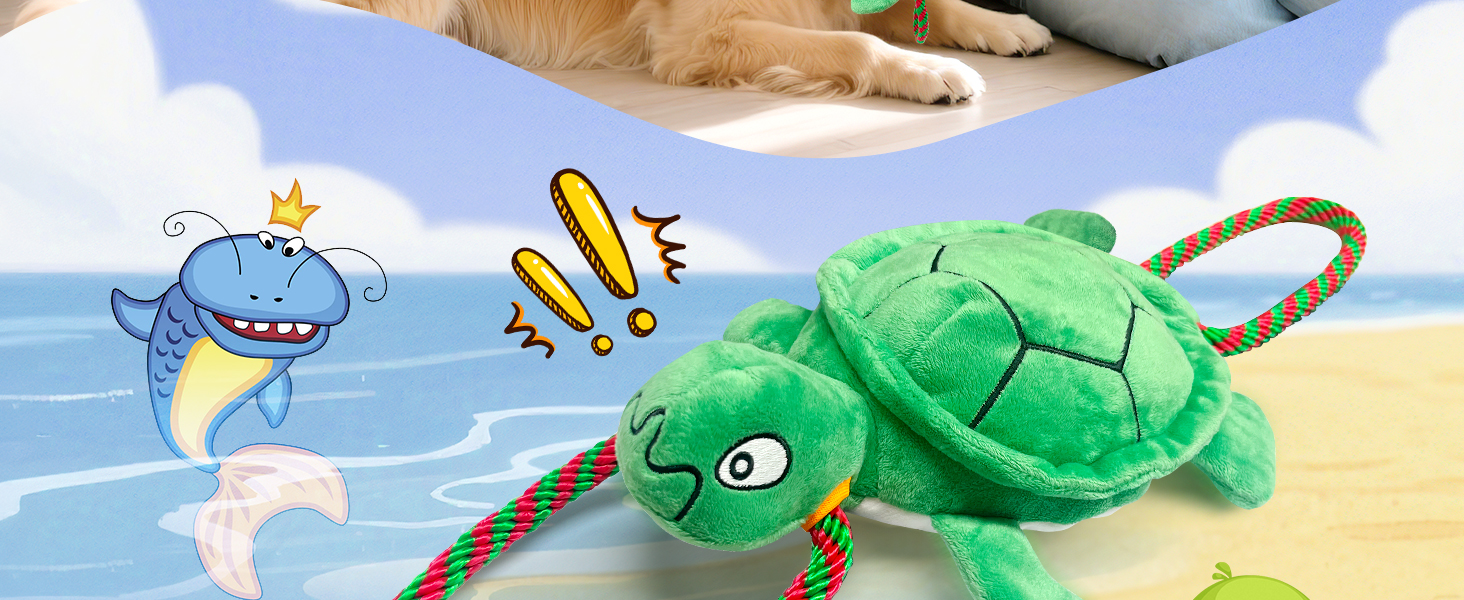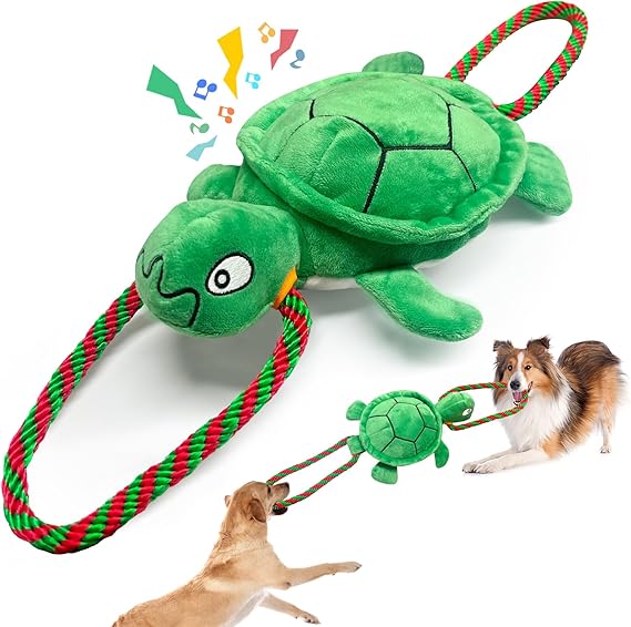 Large Turtle Dog Toys: Squeaky Dog Toys for Aggressive Chewers - Interactive Rope Tug of War Dog Toy - Puppy Chew Toy for Small/Meduim/Large Breeds