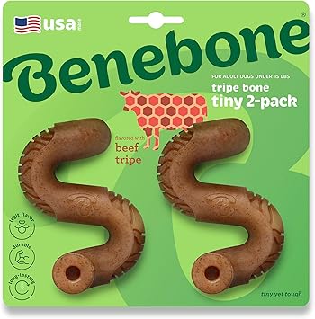 Benebone Tiny 2-Pack, Tripe Bone Durable Dog Chew Toy for Aggressive Chewers, Real Tripe, Made in USA