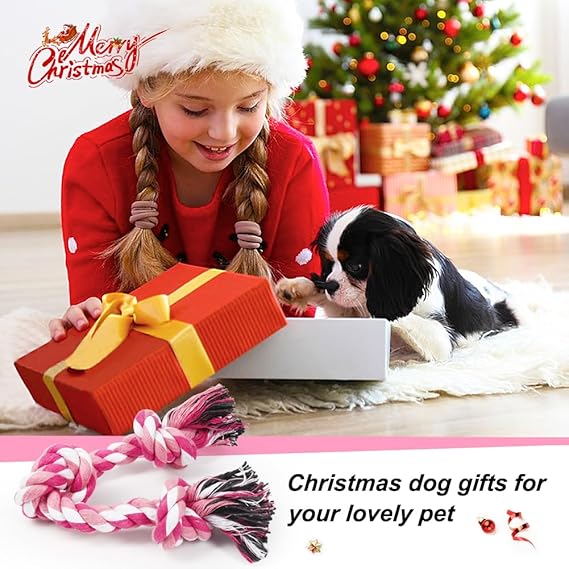 SZEE Dog Rope Toy, 14 in 3 Knots Chew Rope for Small Medium Dogs, Natural Cotton Pull Toy for Tug of War and Teeth Cleaning (Pink)