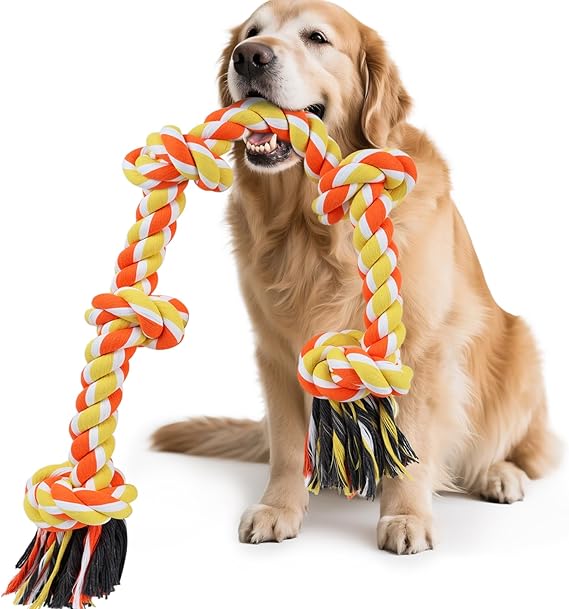 Keep your big chewer entertained and healthy with our 37-inch, 5-knot Dog Rope Toy, built tough for large dogs and aggressive chewers.