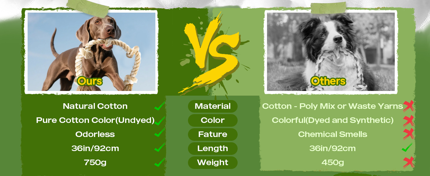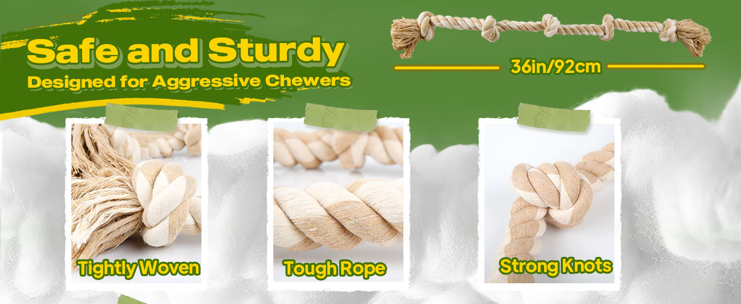 - 【Most Safe Dog Rope Toy】 - Our rope dog toy is made of 100% natural washable cotton, It’s safe for your pet to chew and play daily. We always keep pets healthy as the first purpose.