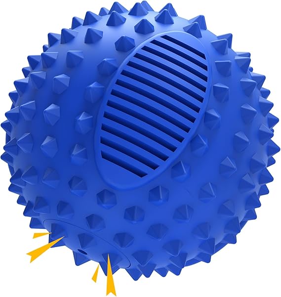- [ Multifunctional Playing Ball ] The ball is designed to be perfect for dogs to fetch, also, owners can fill flavor cells with your dog’s favorite treat, like peanut butter, pumpkin puree, mashed potatoes and so on. Dogs can lick and play at the same time. Whether your dog enjoys playing with you or alone time playing with a toy, it is one of a funny and useful toy to accompany dogs to grow up.