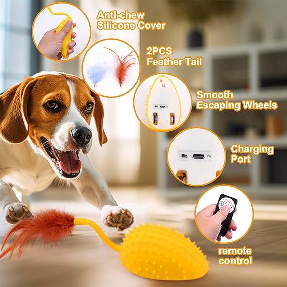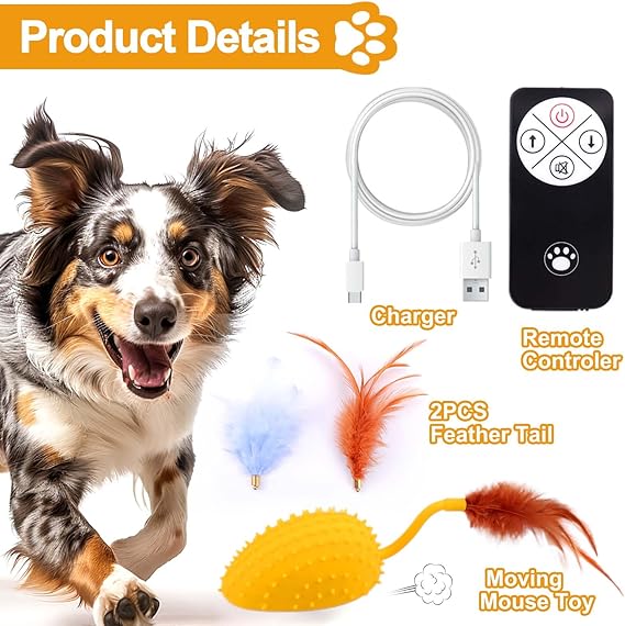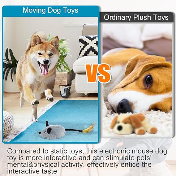 Mity rain Interactive Dog Toys, Fake Mouse Moving Dog Toy with Automatic Sensor, Dog Mouse Toy with Realistic Sound & Extended Tail, Automatic Dog Toy for Cats Dogs Pet, Squeaky Dog Toys