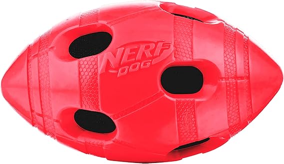 Nerf Dog Rubber Football Dog Toy with Interactive Squeaker and Crunch, Lightweight, Durable and Water Resistant, 6 Inch Diameter for Medium/Large Breeds, Single Unit, Red