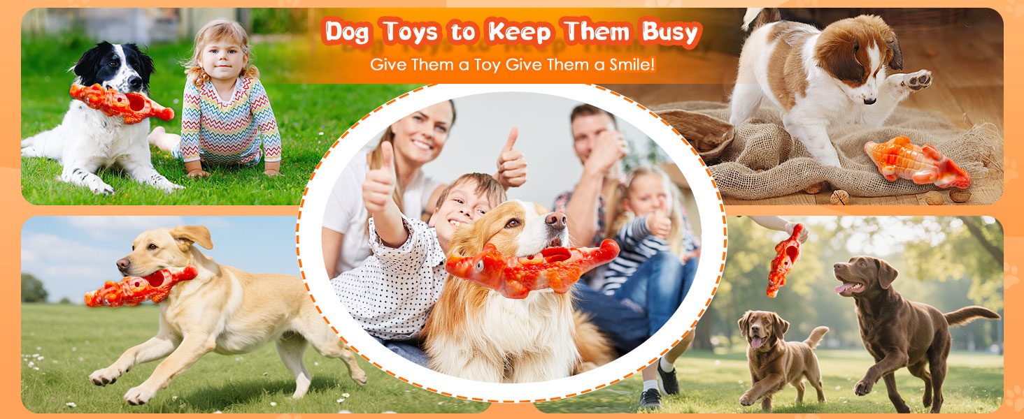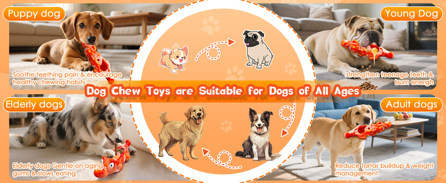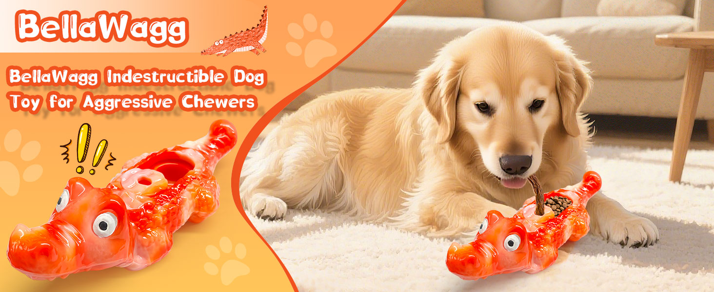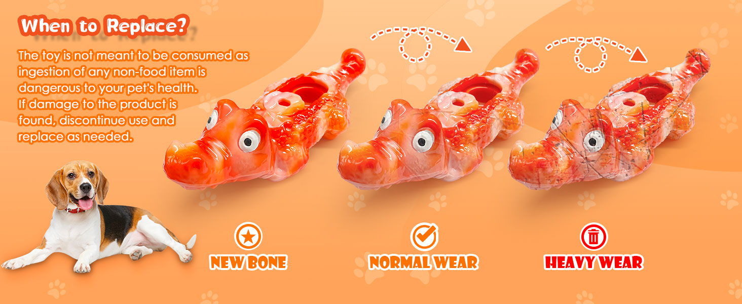 - 【Crocodile-Shaped Dog Toys】Designed with a crocodile shape dog chew toys in bright orange color, captures your dog's interest with its playful design, complete with googly eyes