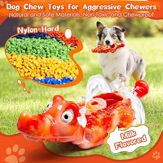 Dog Toy for Aggressive Chewers:Tough Almost Indestructible Chew Toys for Medium & Large Breeds,Treat Dispensing Dog Puzzle Toy Reduce Pet Anxiety and Boredom to Keep Them Busy,Milk Flavored