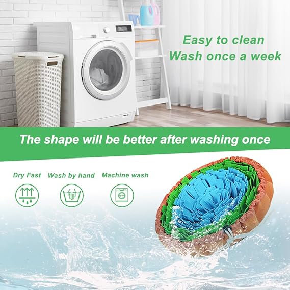- SAFETY MATERIALS - The main material of sniff mat is felt cloth, which is safe but not chewproof. Hand wash and machine wash available. When you receive this felt snuffle mat, machine wash it once to make the shape as good as the picture