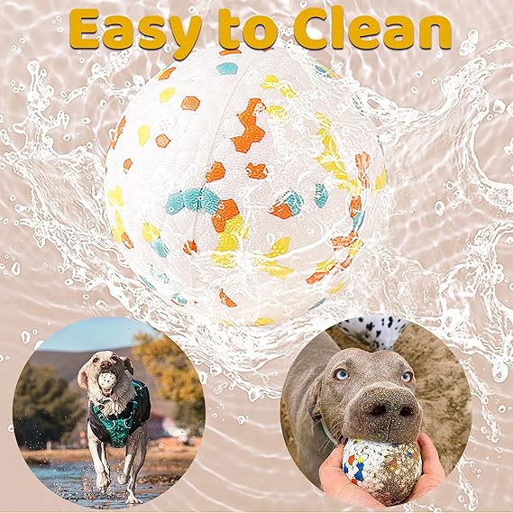 - Floats in Water and Easy to Clean - The E-TPU material properties allow the dog toy ball to floats in water. So your beloved dog can enjoy fetching at the pool, lake or beach. After your dog plays on the beach, you can wash it with soap or directly with warm water and it is easy to dry, thereby providing a clean toy for dogs.