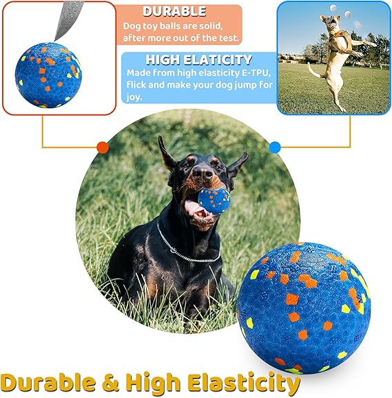 - Bite Resistant and High Elasticity - The whole dog ball is made of E-TPU material, so it has excellent elastomer elasticity and deformation resilience. It's durable for aggressive chewers yet soft on dogs' mouth and safe on teeth. (Tip: We design our balls to hold up longer than other dog toy balls, but no dog toy is indestructible.)