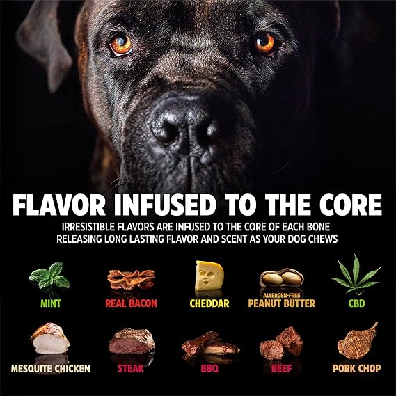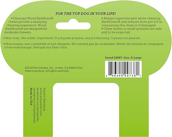 Pet Qwerks dinosaur BarkBone with real bacon dog chew bone is designed for aggressive chewer dogs. Dinosaur bacon BarkBone is a dog chew toy that's proudly made in USA.