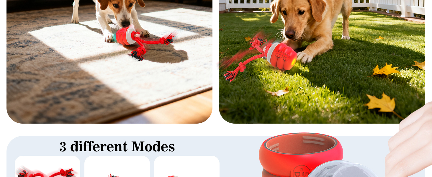 - 3 switchable modes: This motorized dog ball toy, with three different modes (Normal, Active, and Interactive), you can easily switch modes to match your dog's play style and energy level