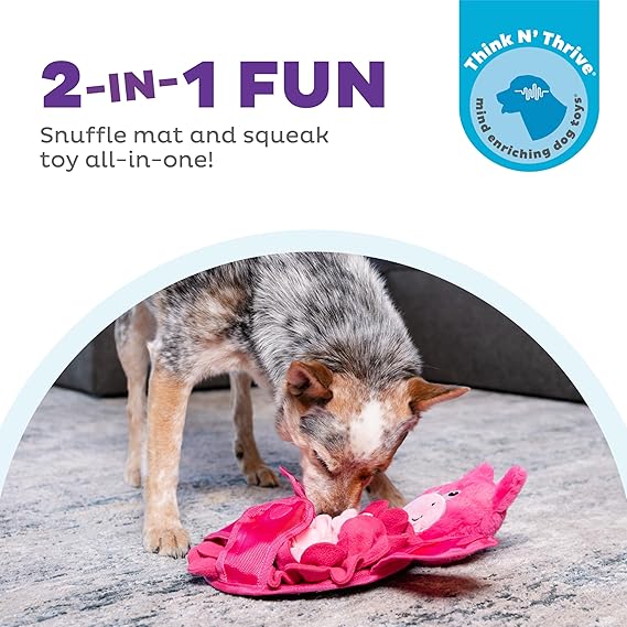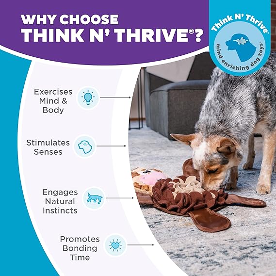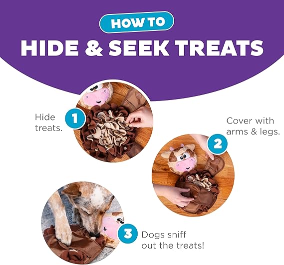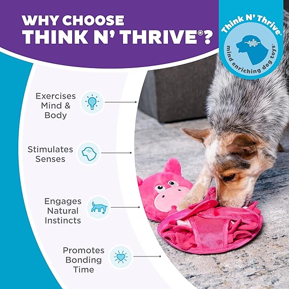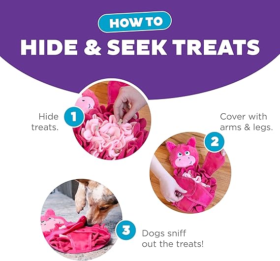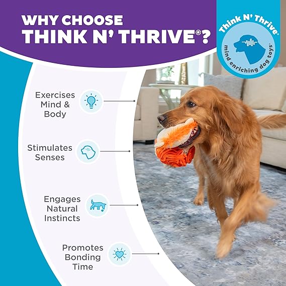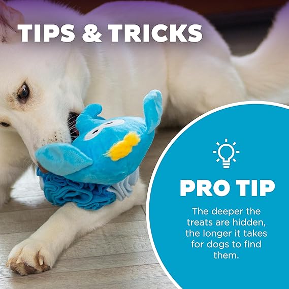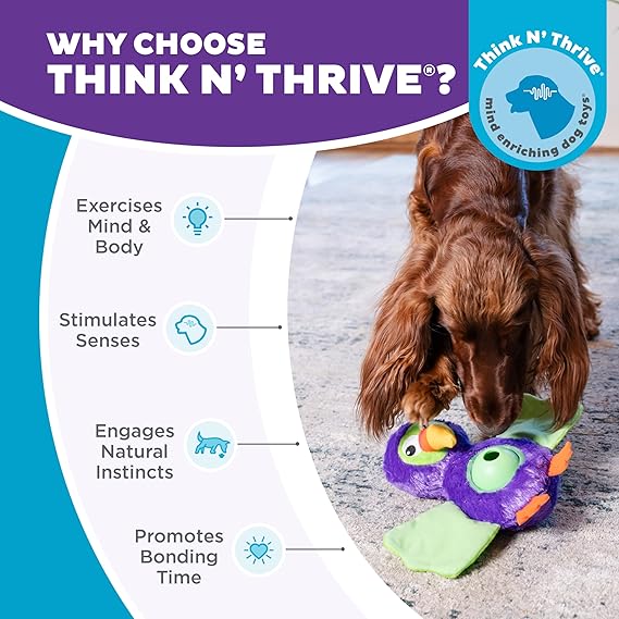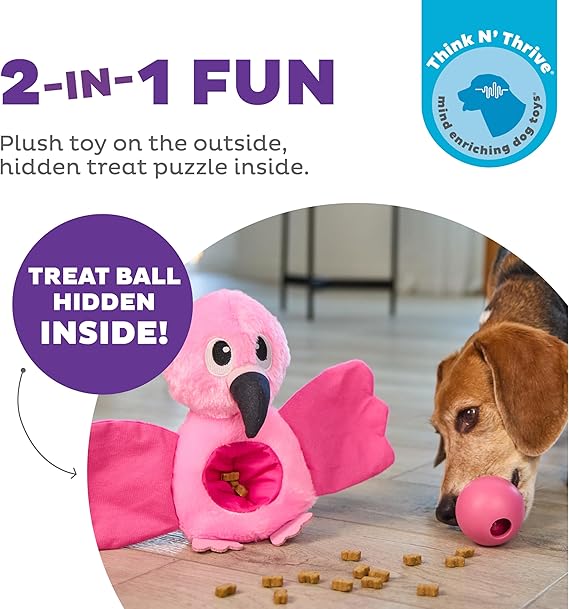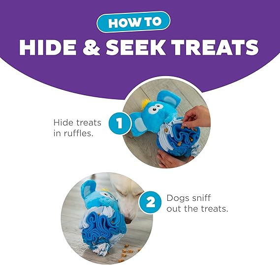 Nina Ottosson by Outward Hound Hide-Ablez dog puzzle combines a plush dog toy with a treat dispenser ball for brain-teasing fun your dog can't resist! Load the treat ball with treats, conceal it within the plush toy, and let your dog unleash their problem-solving skills. They'll use their paws and nose to retrieve the ball and secure the tasty rewards. Even after the treats are gone, the crinkle and squeaky dog toy sounds maintain your dog's interest and prolong the fun. Outward Hound Think N' Thrive mind enriching dog toys give treat-loving dogs a more fulfilling playtime that is mentally stimulating, physically engaging, and emotionally rewarding. Our toys allow dogs to act on their natural behaviors and use their minds, senses, and instincts to problem-solve and actively relieve stress while they play. Engage your dog's foraging and hunting instincts, promote mental enrichment, and ensure endless entertainment with the Nina Ottosson by Outward Hound Hide-Ablez plush dog puzzle. SAFETY & CARE: When choosing a plush puzzle/treat toy, make sure to choose an appropriate size/style toy for your dog. No toy is indestructible. ALWAYS supervise your dog closely, teach your dog how the toy works. This is not a chew toy and not recommended for dogs that chew heavily. Inspect regularly for damage and remove if broken, or if parts become separated, as serious injury may result. Intended for dogs only. Keep out of reach of children. Ultimately, your pet's safety is your responsibility.