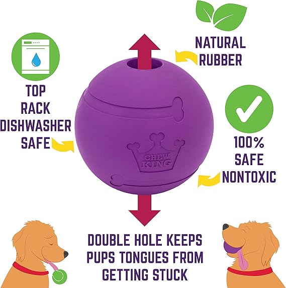 Dogs are our most loyal friends, so it’s only fitting to treat them like royalty every now and then. Which is why vet-recommended King dog toys are made using only thoroughly tested, pet-safe materials like natural rubber, tough cotton rope and rip-resistant nylon. They’re durable, fun and, with the right size and chew level, are designed to outlast even your super Chomper or fetch machine’s most vigorous play. Plus there’s a fun toy for every active part of your pup’s day - fetching, chewing, treating or playing. Try one today and you just might say, “Hail to the King! ”