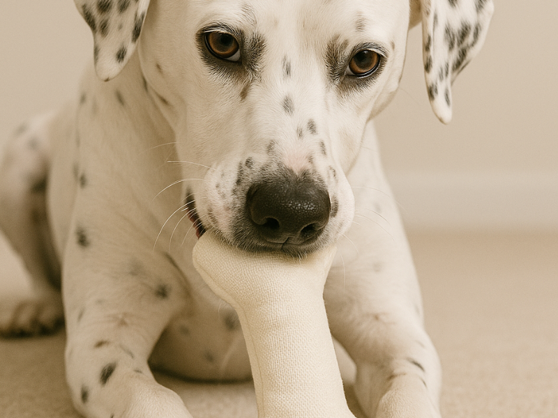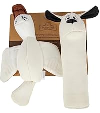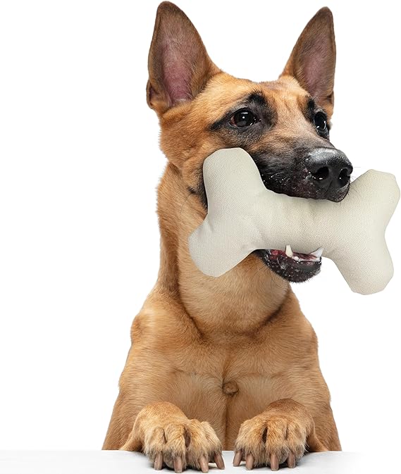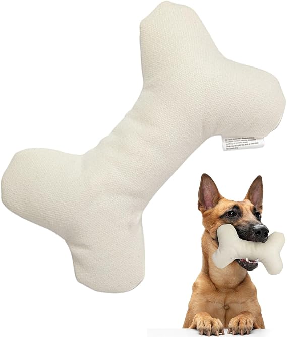 Sustainable Eco-Friendly Durable Cotton Canvas Squeaky Dog Bone Chew Toy for Chewing, Playing and Exercise - T-Bone, White (Safe for Pets & Kids)