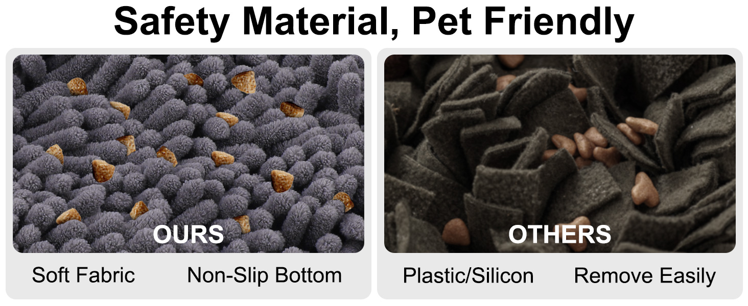 - 【Thicker hair and durable edge guard】Longer and thicker hair help you to hide the food better, the edge guard prevent food drop out from the mat. A wonderful snuffle mat can encourage dogs’ natural instinct, let them have fun exploring.