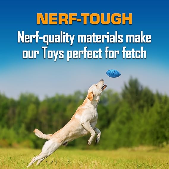 Bring home countless hours of fetching fun with the Nerf Dog 3-Piece Outdoor Toys Gift Set. The set includes the Checker Crunch Ball that's 3.8 inches in diameter, the Spike LED Squeak Ball that's 2.7 inches in diameter and the Tire Squeak Football that's 6 inches in length, ideal fetch toys for medium dogs and large dogs. Lightweight and durable, these Nerf fetching toys for dogs are built Nerf Tough with quality materials to withstand hours of play in the backyard and dog park. Plus, the squeaky dog balls are waterproof and weather-resistant, making them great to take to the lake, beach or pool. You don’t have to worry about losing the pet toys no matter how far you throw them - their bright colors make them easy for you and your dog to track! This three-pack of Nerf Dog outdoor toys will entertain you and your dog for hours on end! Explore the whole line of Nerf pet toys for dogs and cats to discover even more fun for you and your furry friend. WARNING: For pet use only. ATTENTION: Supervision is recommended when your pet plays with toys. Remove toy from dog if any part is damaged.